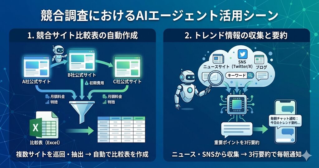 【競合調査の自動化】AIエージェントで「コピペ作業」をゼロにする方法