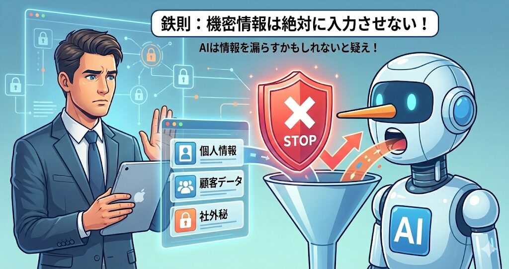 鉄則:個人情報、顧客データ、未公開の社内機密は絶対に入力させない。