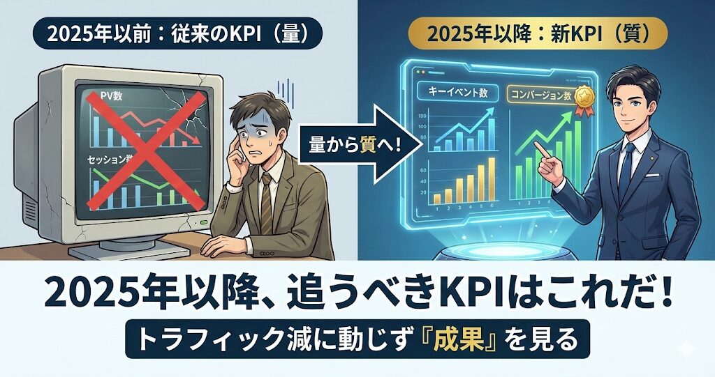 この記事では、AI時代におけるユーザー行動の変化を解説し、2025年以降に追うべき新しいKPI(重要業績評価指標)について、具体的な対策をお伝えします。