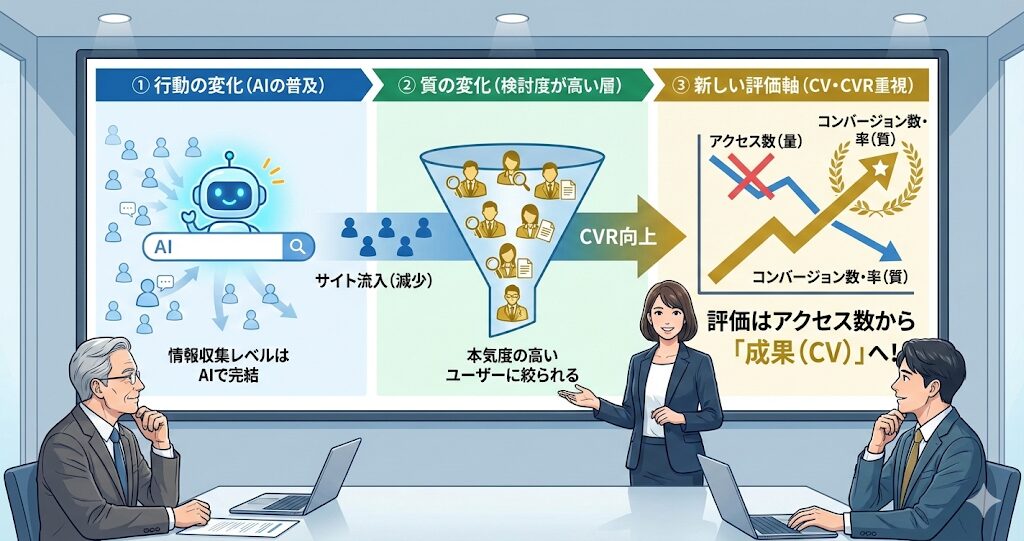 【AI時代のWeb戦略】検索流入減はサイト評価の低下ではない?変化するユーザー行動と新KPI設定