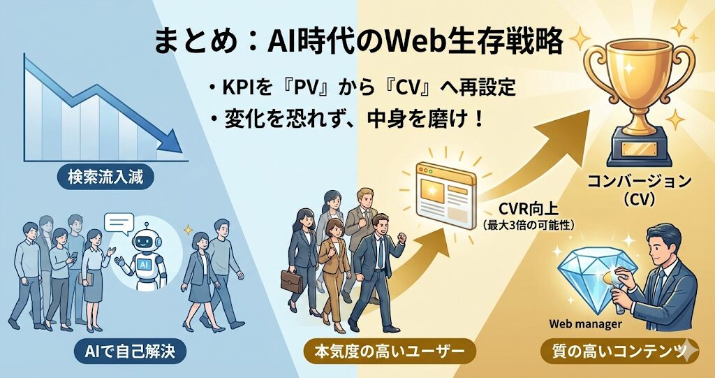 AI時代の到来により、Webサイトへの「とりあえずのアクセス」は減少していくでしょう。しかし、それは悲観すべきことばかりではありません。