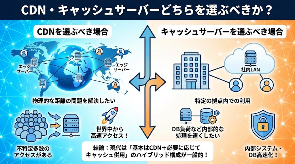 まとめ:CDN・キャッシュサーバーどちらを選ぶべきか