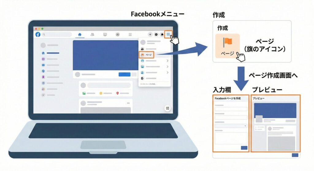 まず大前提として、Facebookページを作るには「個人のFacebookアカウント」が必要です。