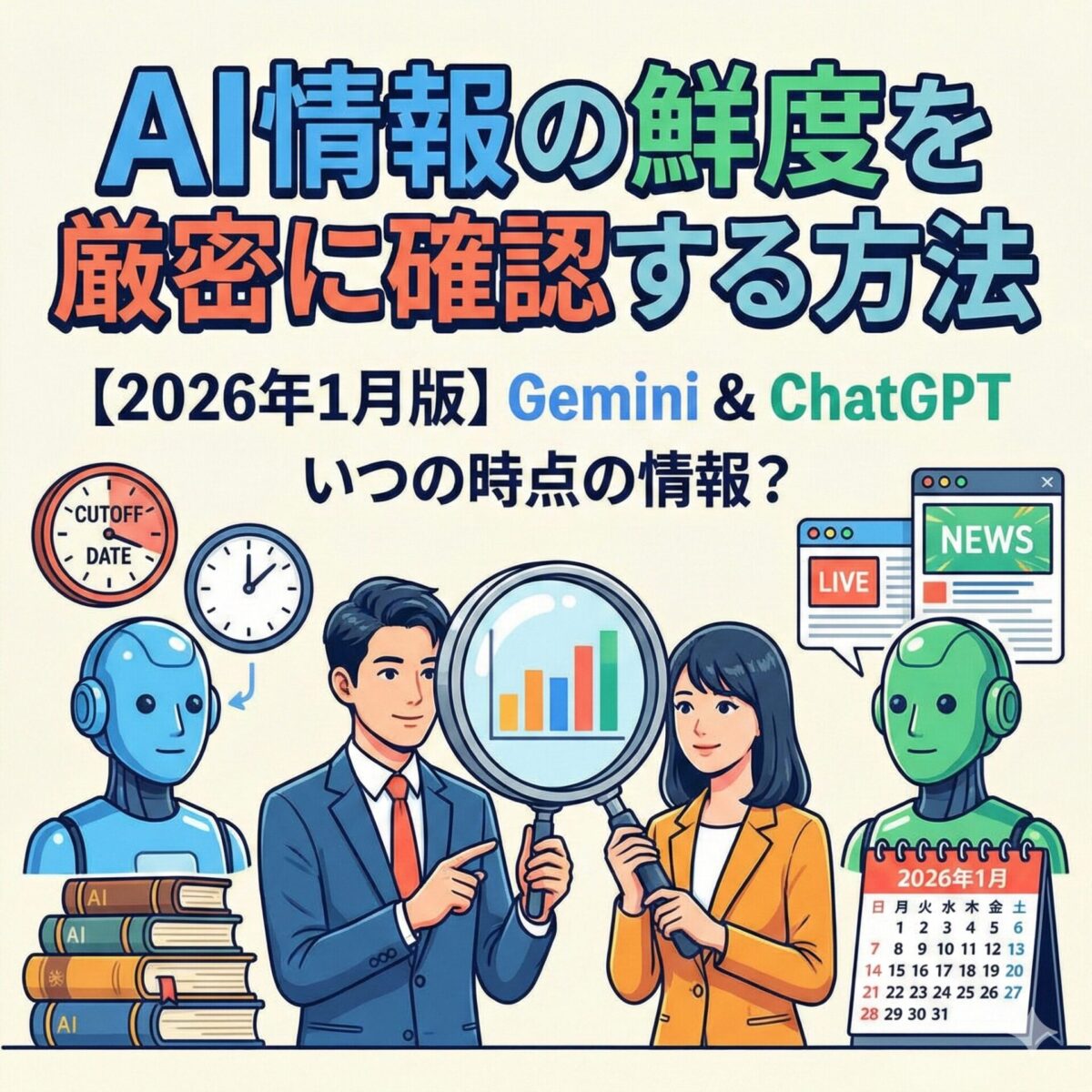 ※本記事は一般的なAIの仕様と仕組みに基づいて解説しています。特定のモデルの正確なカットオフ日は、使用するタイミングでAIに直接質問して確認してください。