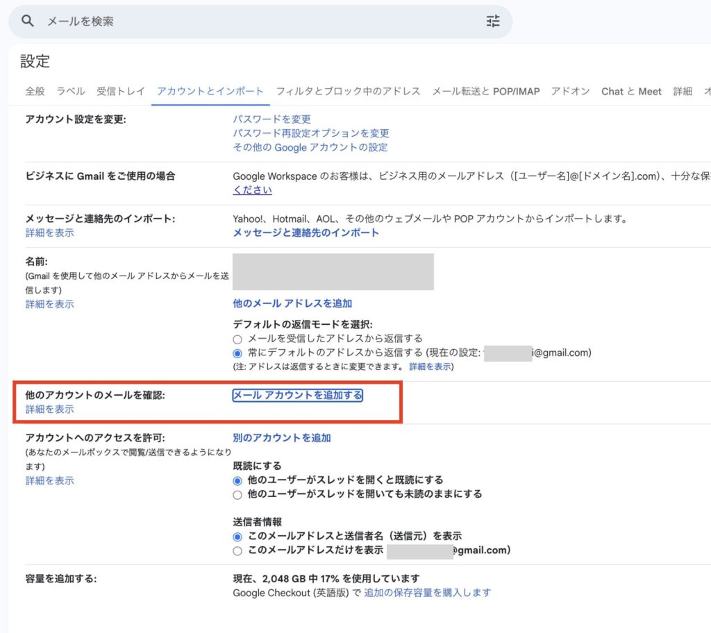 - まずは確認: 設定 > アカウントとインポート > 他のアカウントのメールを確認