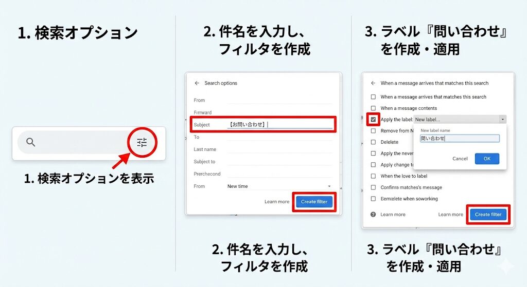 ステップ1:Gmail側で「問い合わせ」だけを抽出する