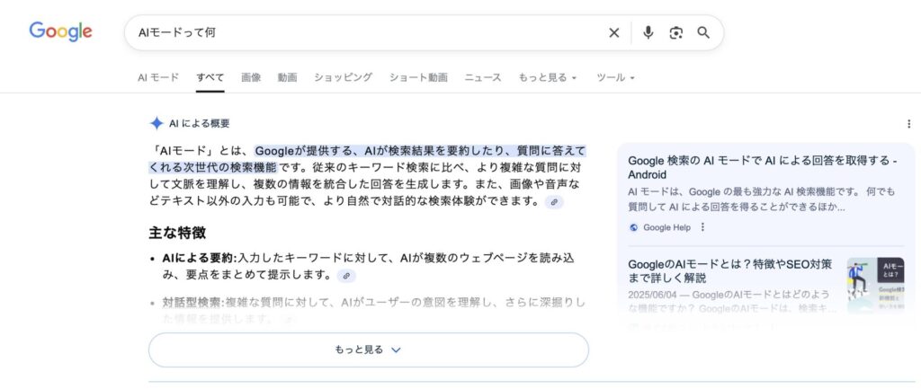つまりAIによる概要は「要約型」、AIモードは「対話型」と言えます。