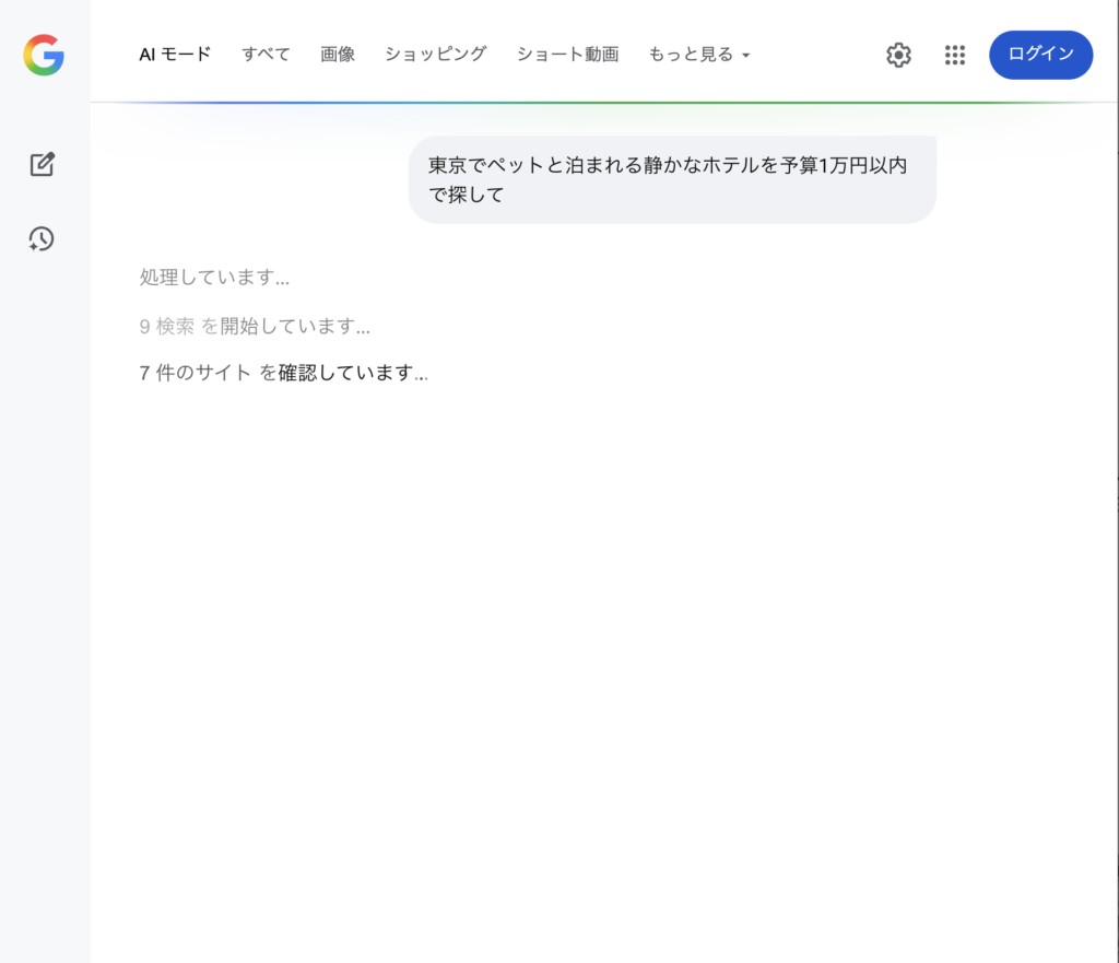 ホテルを予算1万円以内で探して」というように条件が複雑になると、AIモードが登場し、複数条件を考慮して最適な結果を導き