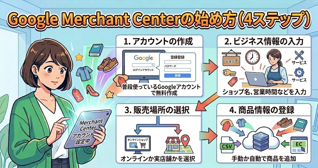 この記事では、専門用語をなるべく使わずに、Google Merchant Centerでできることや、利用する目的、そして簡単な始め方について分かりやすく解説します。