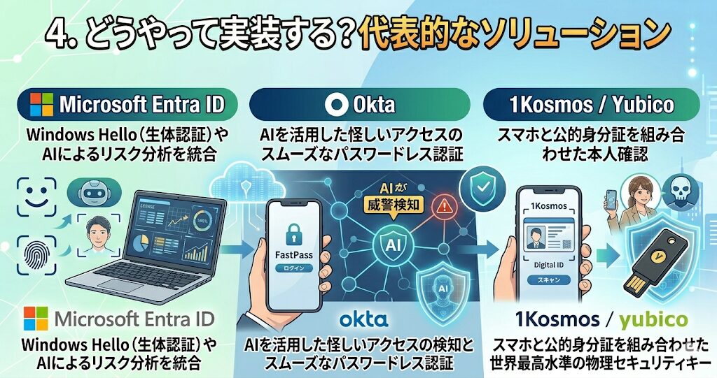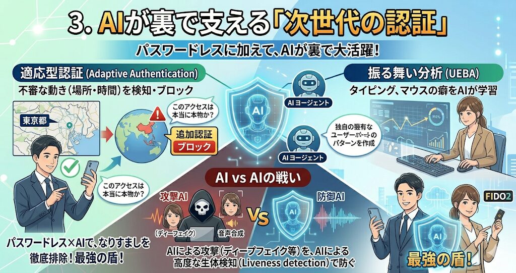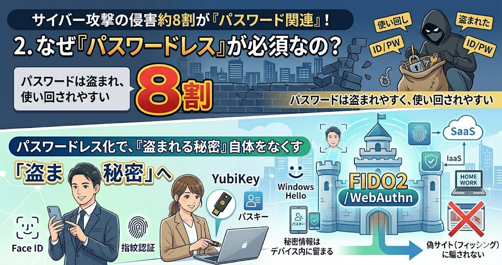 これからのセキュリティは、パスワードをなくし(パスワードレス)、AIが裏で安全を見守る「アイデンティティ・ファースト」な仕組みが最強の盾になります。