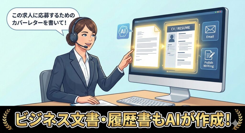 履歴書(CV)やカバーレター、正式なビジネスメールの作成も任せられます。