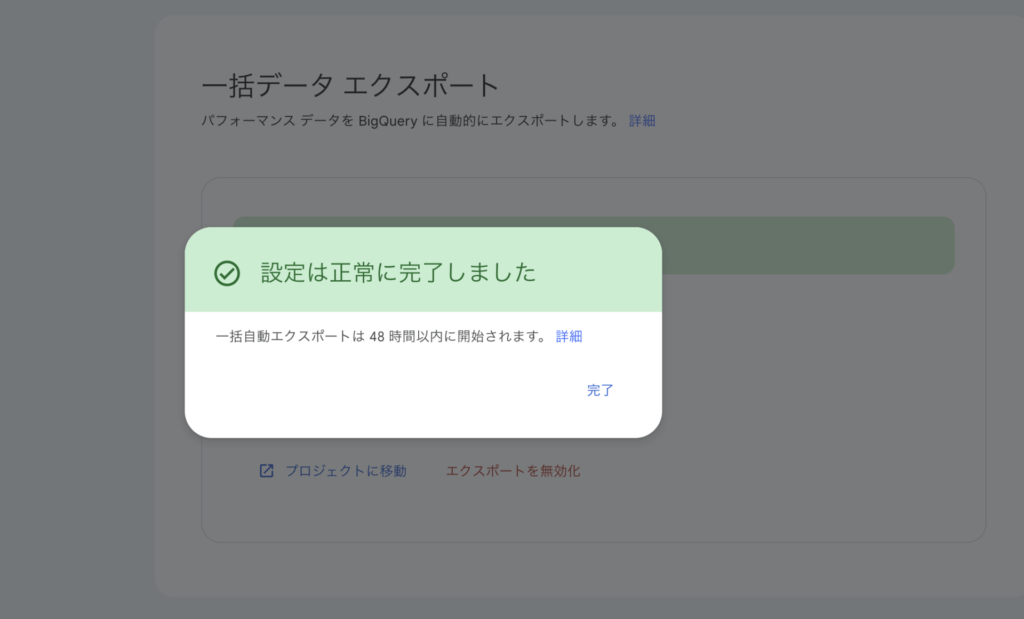 注意点:このエクスポートは「設定した日以降」のデータが蓄積されます。過去のデータは遡って取得できないため、1日でも早く設定ボタンを押すことが重要です。