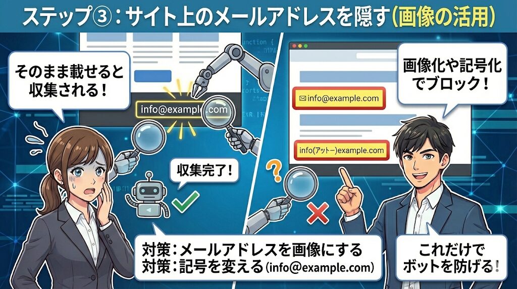 ステップ③:サイト上のメールアドレスを隠す(画像の活用)