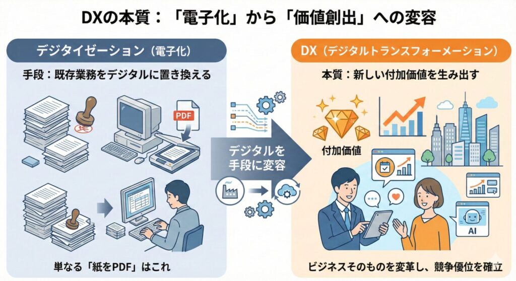 「デジタイゼーション(電子化)」であり、DXへの一手段にすぎません。