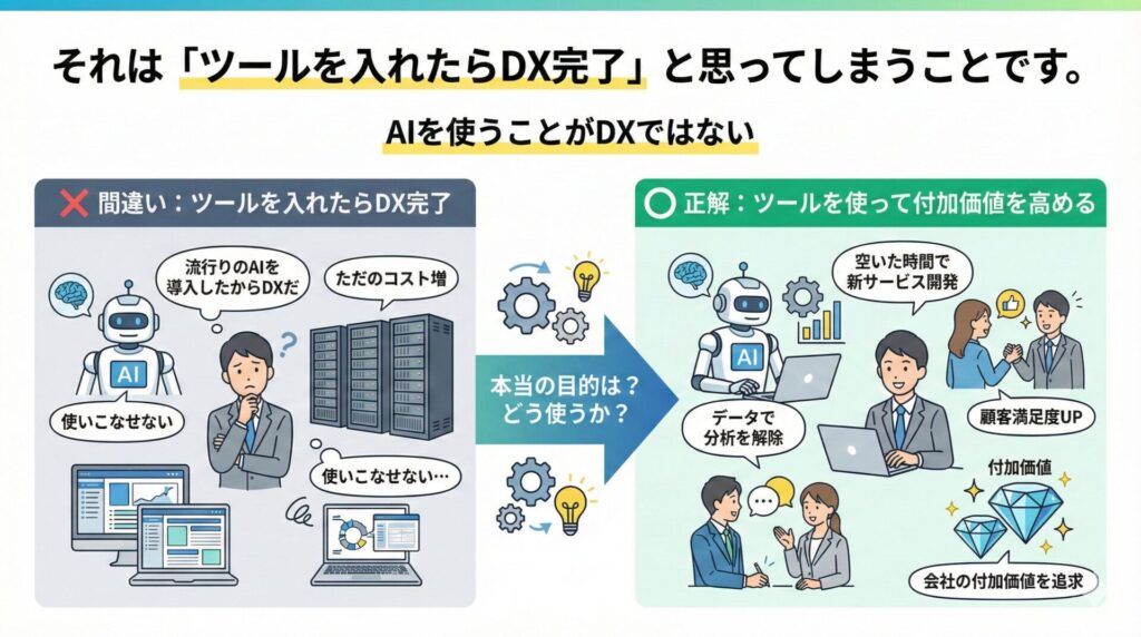 それは「ツールを入れたらDX完了」と思ってしまうことです。